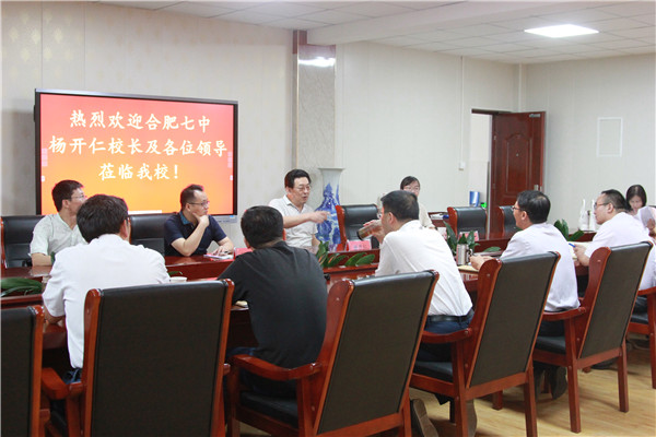 9月26日,合肥七中杨开仁校长率领他的管理团队部分成员来到合肥五中开展教育教学管理经验交流活动。合肥五中周祖保校长携学校管理干部参加了本次交流活动。
