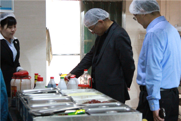 王勇仔细察看了学校食堂仓库、操作间、售卖间和学生用餐环境,通过询问食堂管理人员和翻阅食品原料采购使用记录,详细了解了食品原料采购渠道和供货商资质、原料采购索证索票、食品添加剂使用、食品留样、餐用具清洗消毒、从业人员管理培训等是否符合规范要求。