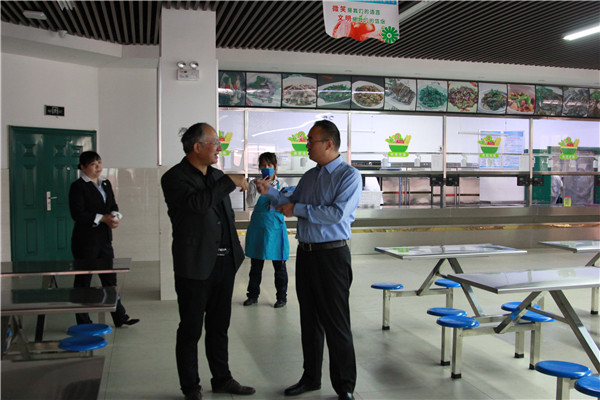 2019年11月6日上午,合肥市教育局副局长王勇深入五中食堂检查食品安全工作,合肥五中副校长胡晨、总务处主任王同芝陪同检查。